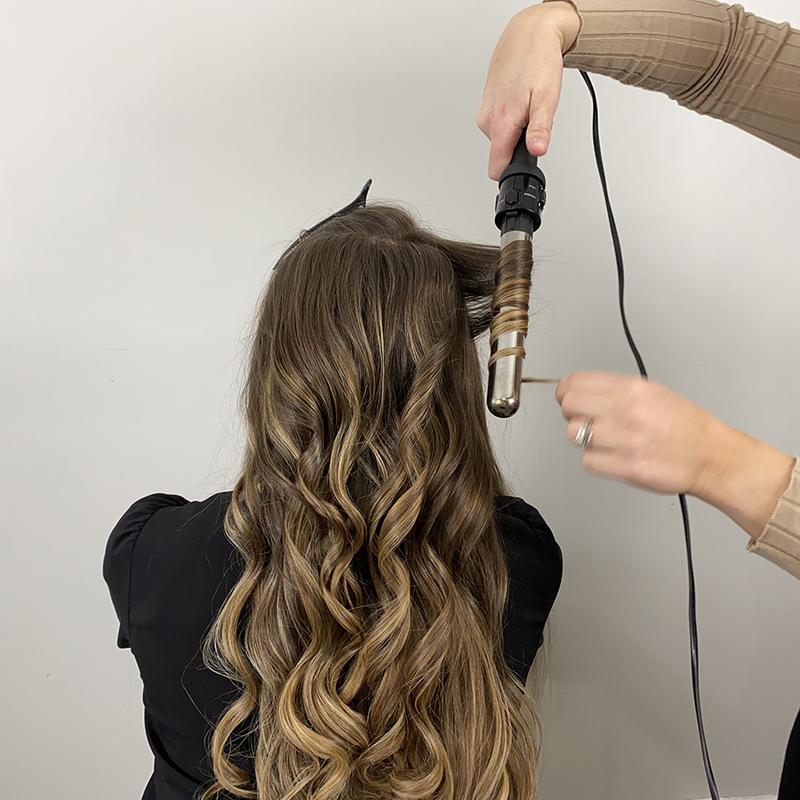 - Section the entire head and curl with a Sam Villa Artist Series 2-in-1 Marcel Iron and Wand 1” in alternating directions.