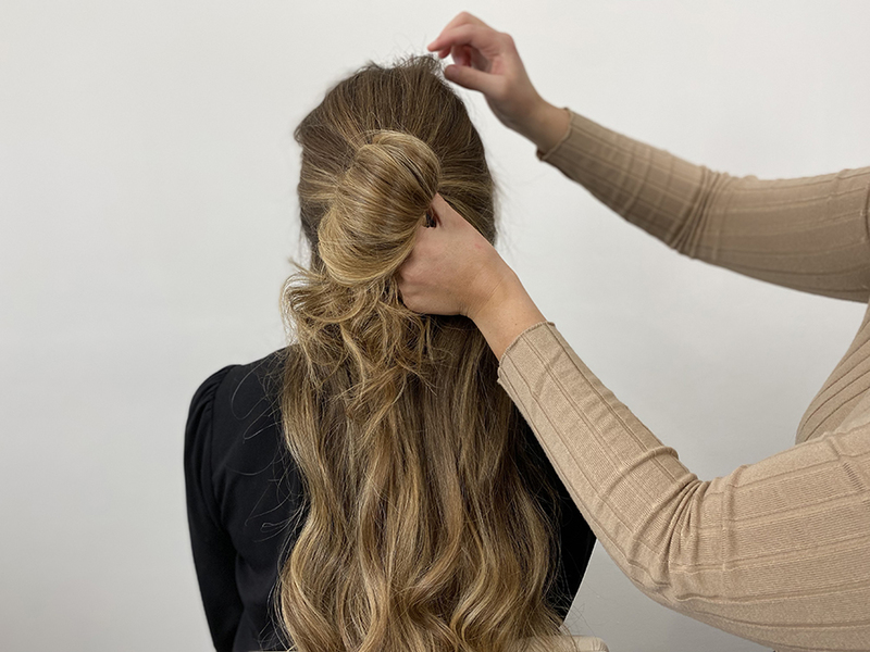 - Backcomb hair with a tail comb at the crown to build a lot of volume. Using a volume powder such as Sexy Hair Big Powder Play Lite on the root can add even more.