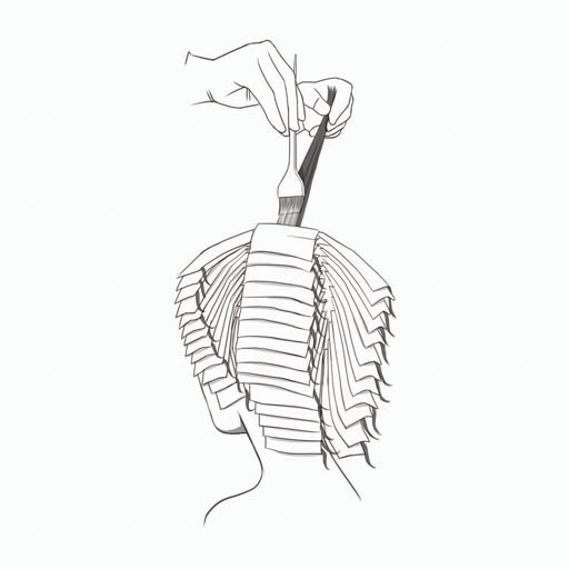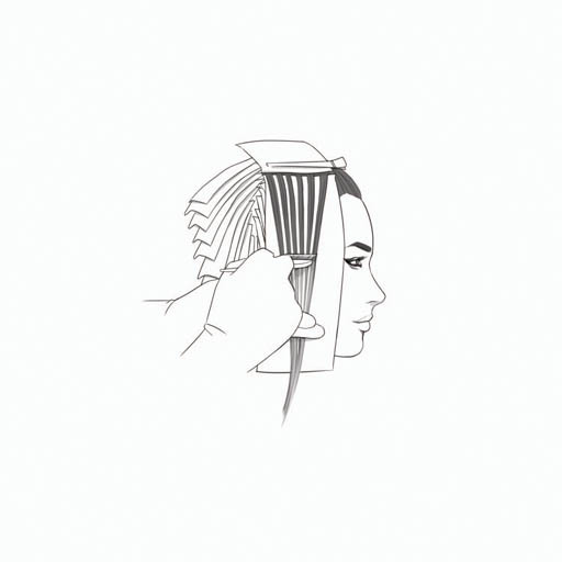 Paso 1: Empieza por tomar un apartado horizontal de 1/4 de pulgada por encima de la oreja a la derecha región temporal. Sección de la armadura, colocar en una hoja y aplicar la fórmula A de 1/4 pulgadas del cuero cabelludo al comienzo de los puntas previamente aligerados. No se superponen.