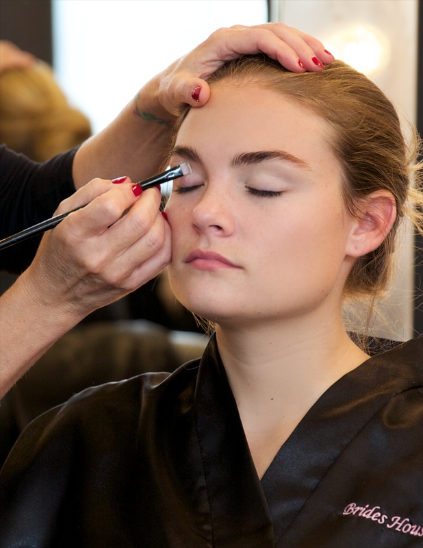 Gently sweep brown shade just over the curve of the eye and blend.This helps emphasize the eyes creating the illusion of depth.