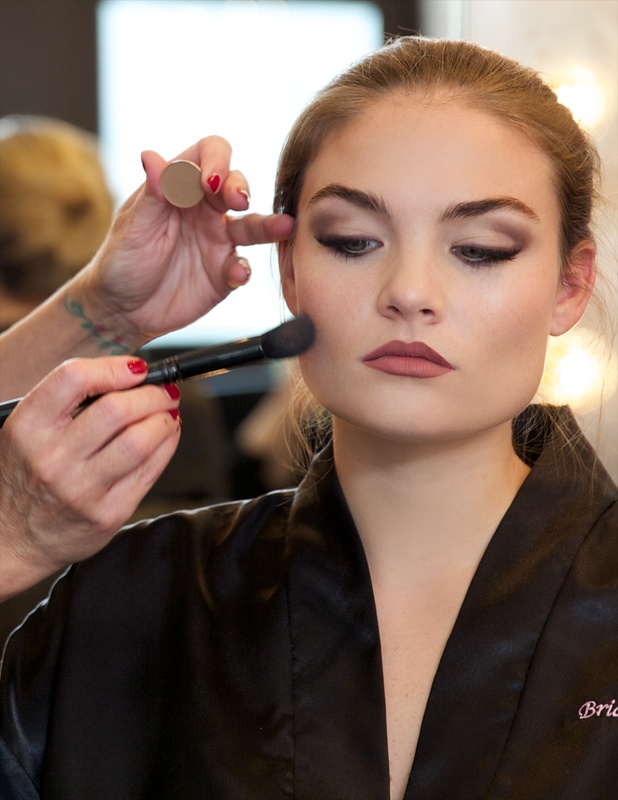 Blush can also be applied with airbrush. Spray lightly from the apples of the cheeks toward the hairline.