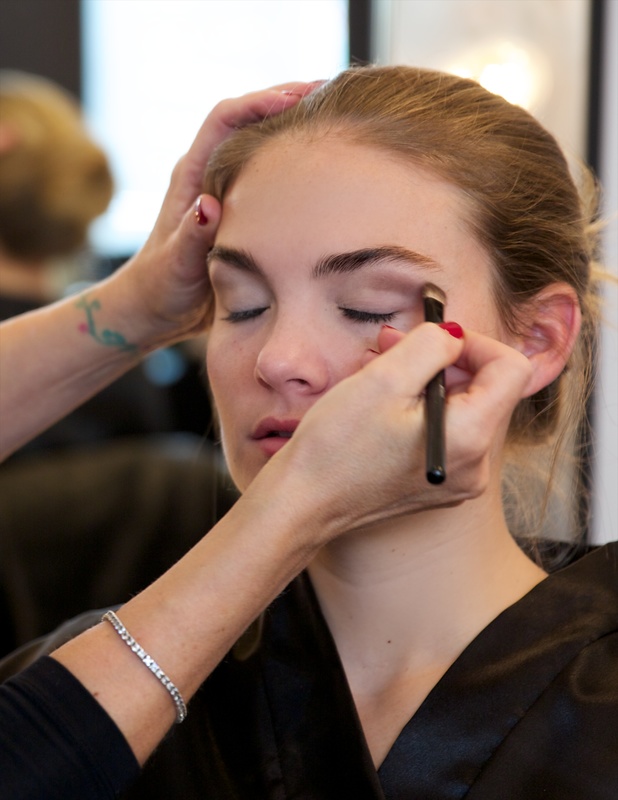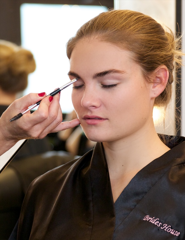Use an angled brush and light brown shadow to fill in and correct eyebrow shape. For extra drama, be sure to emphasize the arch.