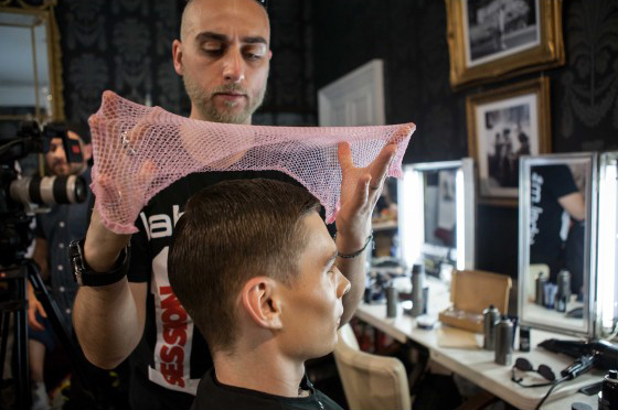To give this slick back look hold and a high shine, the label.men Sculpting Pomade was the key tool.