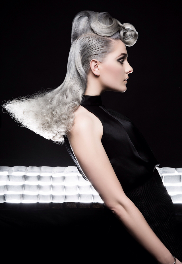 The inspiration behind my collection is hair of future’s past. Each individual style is a contemporary look created from a vintage hairstyle trend. I also wanted to show textured angles with sleek curves to show contrast, but it also gives just the right compliment to the hair. After piecing multiple images and blueprints together, my ideas came to light, and the collection was created.