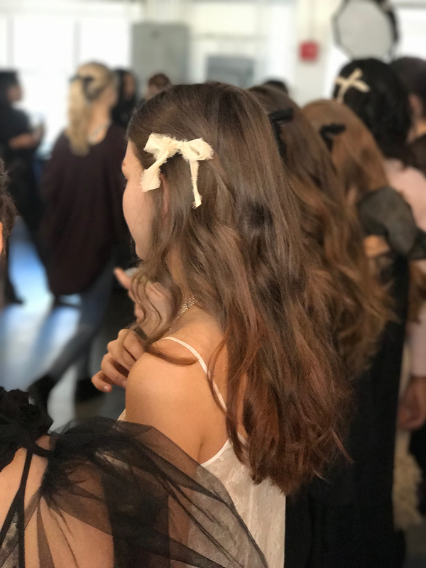 The soft feeling of ruffles and bows on their garments echoed in their hair. With barely their waves and beautifully placed bows. Sponsored by label.m and lead by Matthew Curtis the hair perfectly matched the idealistic nature of the show. Follow along below to see how to get the ethereal looks from Mémère.
