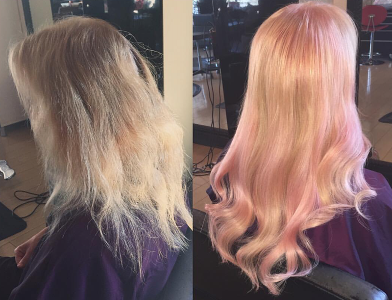 For clients who just want a taste of rose gold a direct dye is the best option. Go for a baby pink or peach if yellow tones are already present in the hair. If there is an absence of yellow try for a coral tone! I love to gloss over my Direct Dyes with an ammonia free glaze for added shine and longevity! In this case I would opt for a violet based glaze at the lightest level matching my canvas to add some depth to my color!