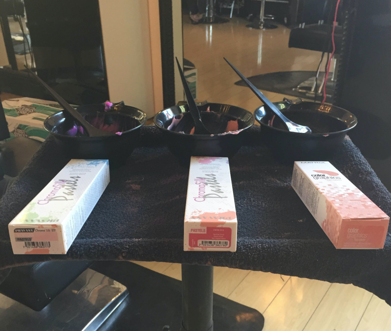 For the look below I melted baby pink, peach and coral direct dyes together (keeping one tone constant on my base) and glazed with a 9V diluted to an 11!