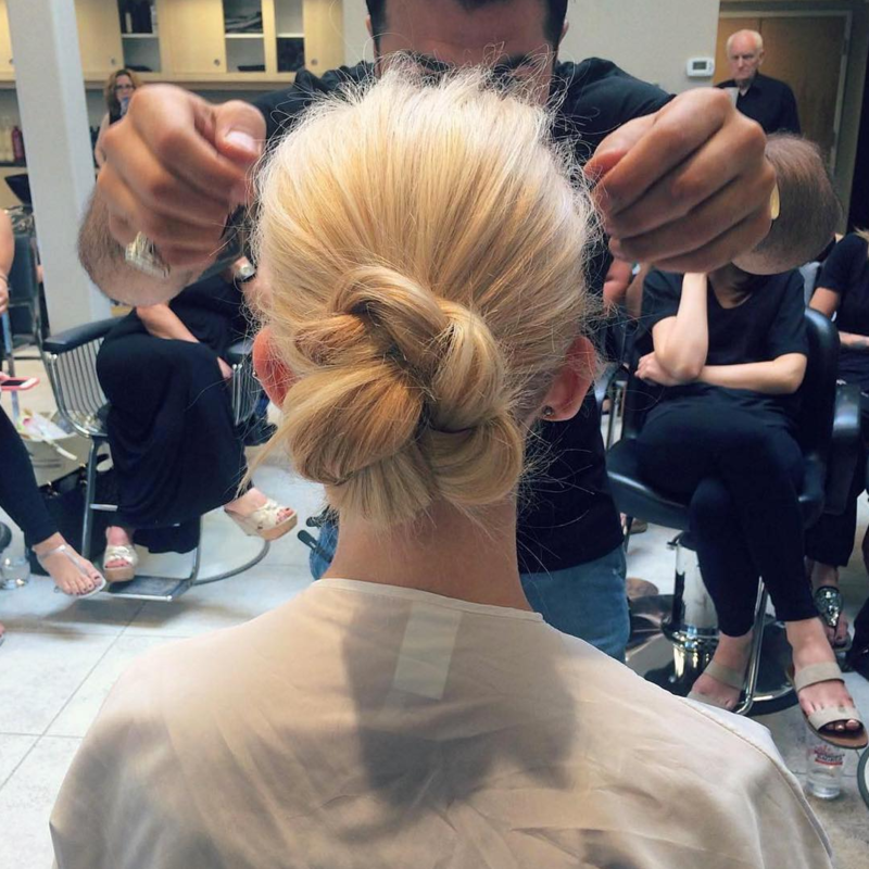 Braided Bun – This braided bun style by Richard Mannah is the perfect blend of casual, cool and sophisticated. With a sleek silhouette and an embellished bun it can be work high or low at events both dressed up and down.