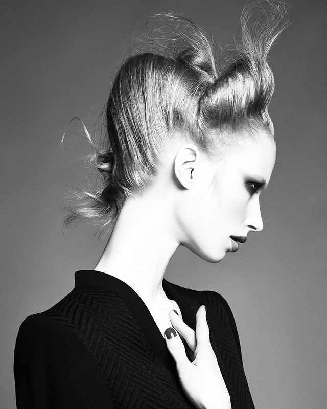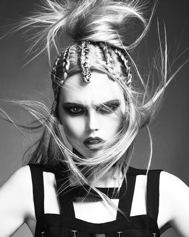 When we shoot a collection we are colouring hair the weekend before then I oversee the images and I make the final choice on the Artistic Team images. For me personally, my favourite aspect is it looks beautiful yet really pulls you in with intricate detailing and structure. The plait is one of my favourite images as well as the top knot – I had some black and white cotton and basically when we did the plait I covered the models face with the black and white cotton to give detail and created a simple top knot twist with braids and added the hair dryer for an added effect – it wasn’t planned but it’s the little ideas like this that go a long way. To make this collection even more close to our hearts the model is a client and even she was blown away (literally!)
