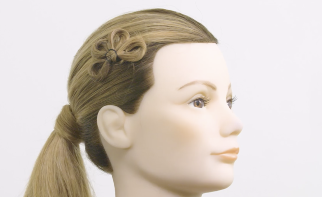 - Secure the elastic around the entire group of petals (loops) and wrap the remaining hair around the elastic.