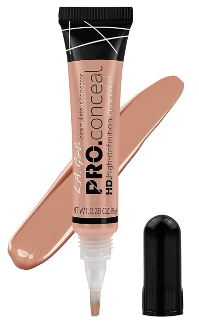 L.A. Girl Pro Conceal HD Concealer — A creamy, crease-resistant concealer that works well for peach or orange-based correction under the eyes or on darker discoloration; buildable and easy to blend.
