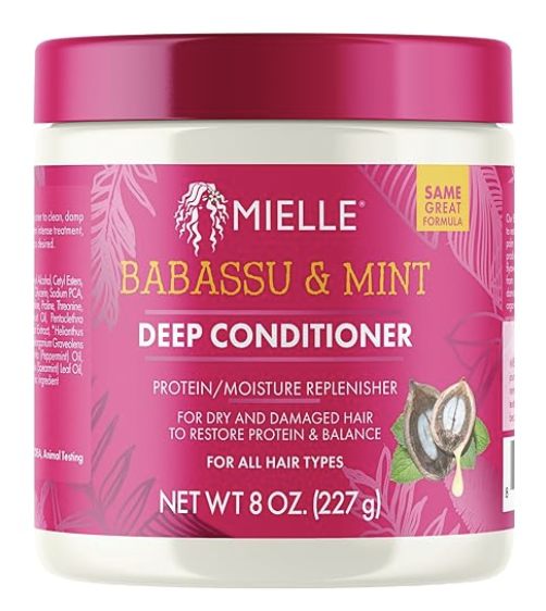 Mielle Babassu & Mint Deep Conditioner – A protein-moisture balanced mask that strengthens and revitalizes curls with a refreshing mint tingle.