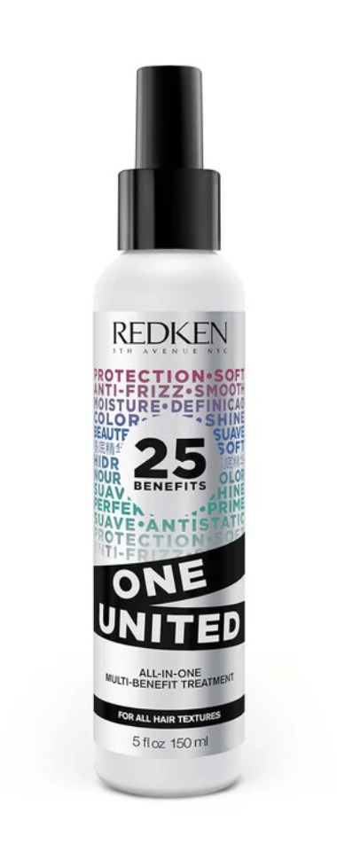 It’s simple (kind of) — tuck hair at the nape, knot a silk scarf, and call it chic. However, the difference between it coming off as minimal vs. messy comes down to your primer. Mist One United Leave-In to detangle, add light conditioning, and give hair that “behaves under fabric” smoothness—plus heat protection if you touch up ends. One bottle—25 endless benefits.