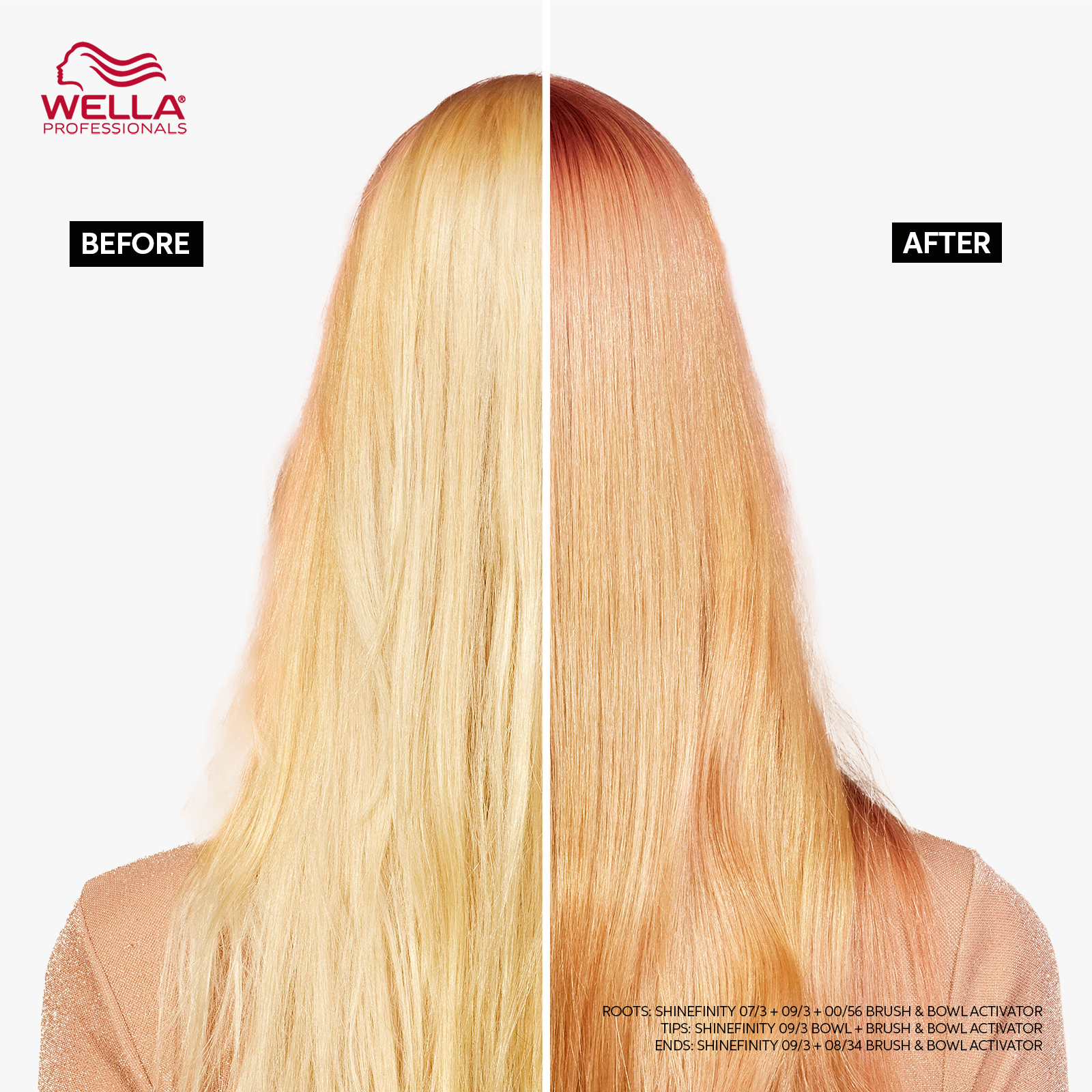 Your individual color will depend largely on your starting point. Because Wella Professionals Shinefinity is a ZERO lift glaze, meaning it is a deposit only color, so it will not lighten the natural hair and the end result will be determined by your starting point. In addition to this, the formula and technique can be applied throughout the whole head or to designated sections based on the desired finished look.