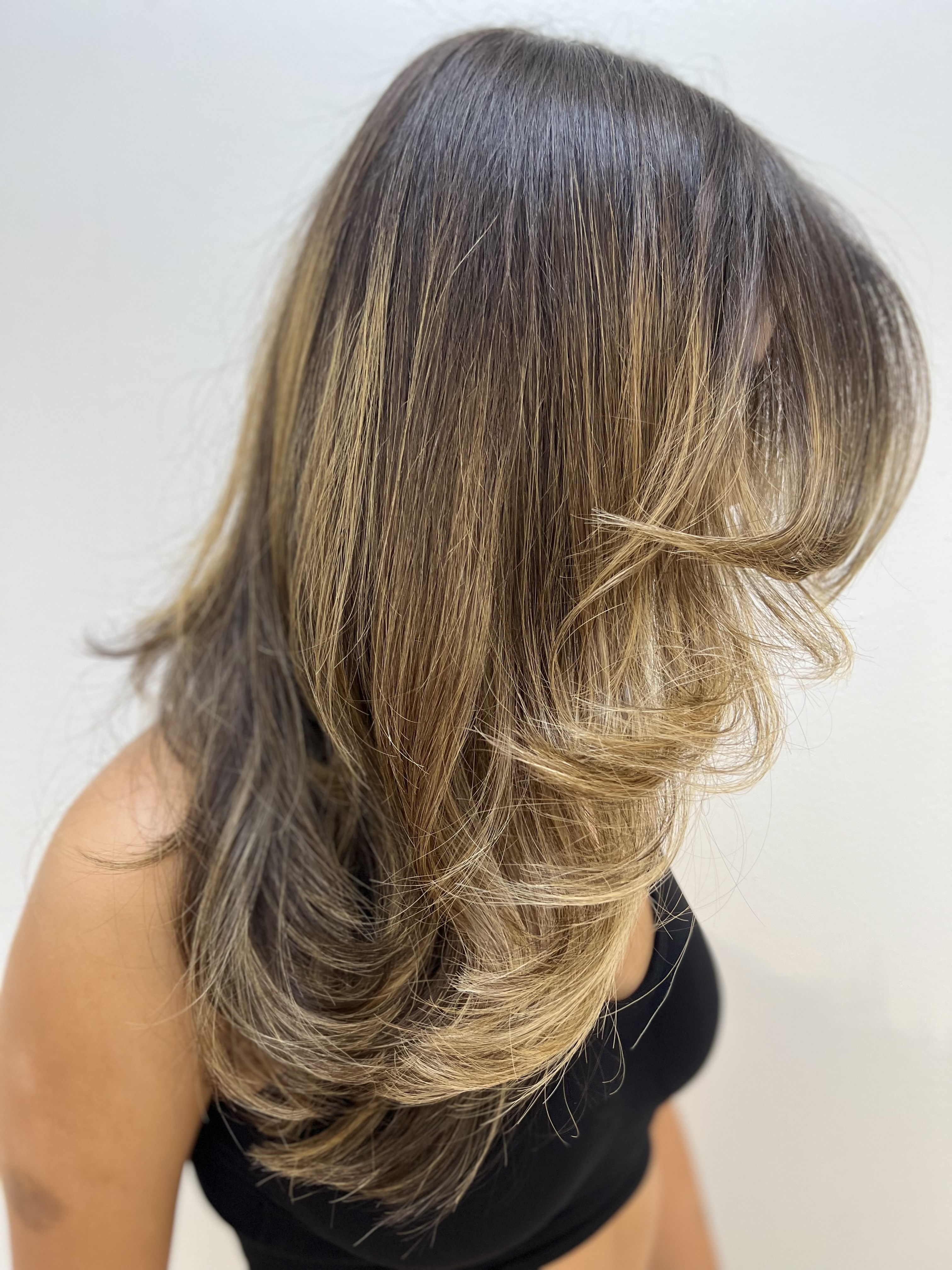 - It is heavy, so the shape must have medium to long layers to create bounce and tropical movement. From mid to ends is where to texturize only so it can have that lovely movement.