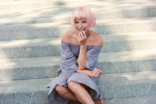 When you’re sporting a sugary-sweet, cotton candy pink hue, you need a little edge. A sleek, choppy bob is a cool, unexpected canvas for the flirty feminine shade—and puts your color at the forefront of your overall look.