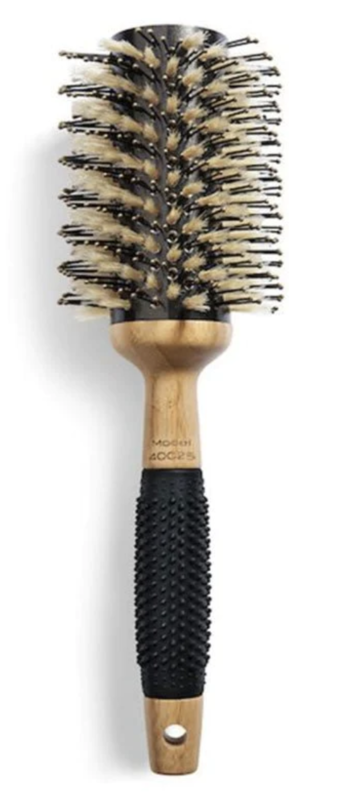 Boar bristles are good for textured hair that lacks luster because they distribute natural oils for a smooth shiny finish. Nylon bristles are more flexible which allow the brush to glide easier through hair and dry it faster – good for hair on the finer side or that lacks fullness as nylon bristles build maximum volume. Both types of round brushes can create volume, but the boar bristles give more tension to compress hair while nylon bristles have less tension for an airier effect.
