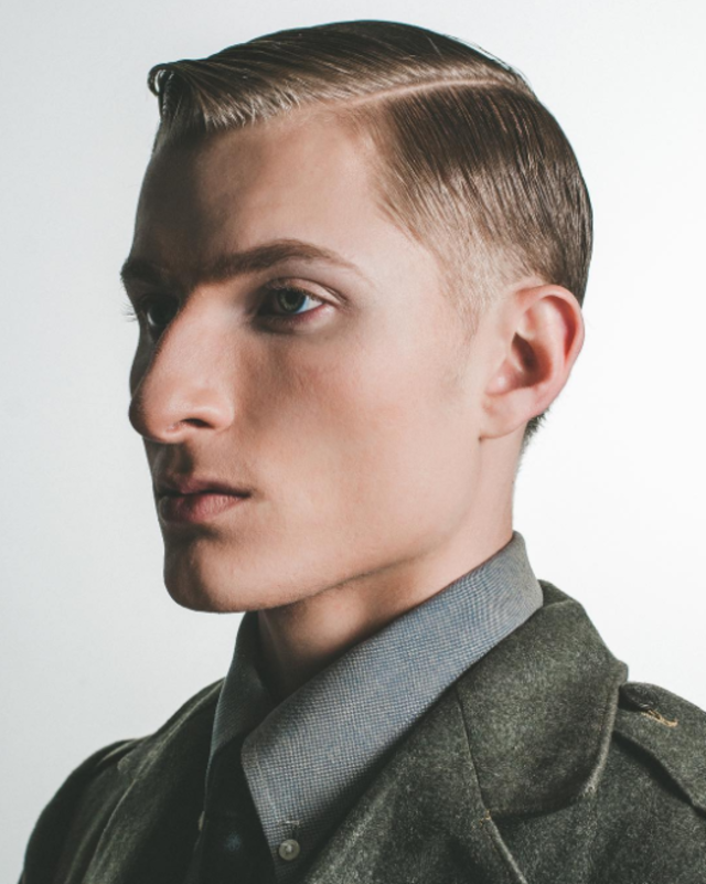 Take a cue from the military looks of years’ past and opt for a deep side part. To highlight clean edges and hold the style in place, apply 18.21 Man Made Pomade to dry hair and comb through.