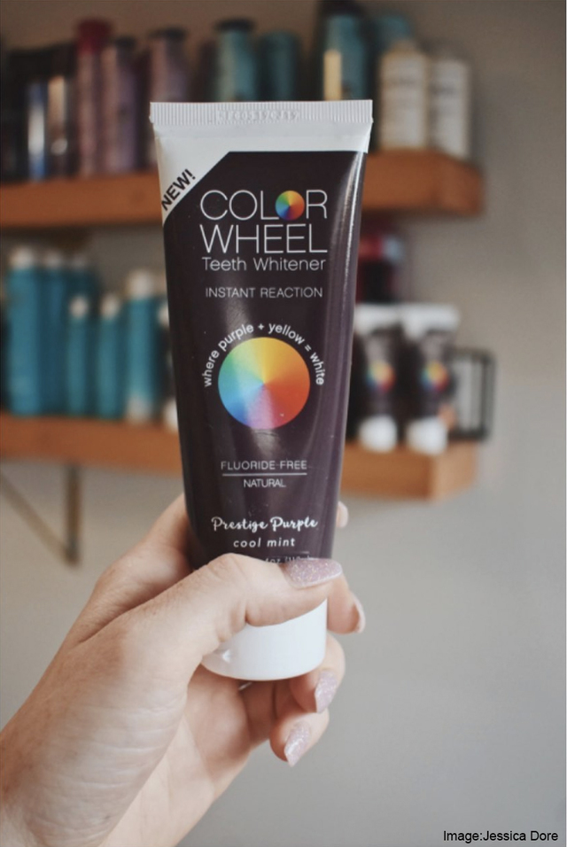 As hairstylists, we know all too well the importance of violet toners and purple shampoos - they work miracles to bust brass and fight off unwanted yellow tones. A staple behind the chair, this is exactly how Giana Randazzo, the inventor of Color Wheel came up with her idea - a purple-hued toothpaste that instantly whitens teeth. Utilizing much of the same concept as a toner – Color Wheel toothpaste coats the teeth to reveal a whiter, brighter smile.