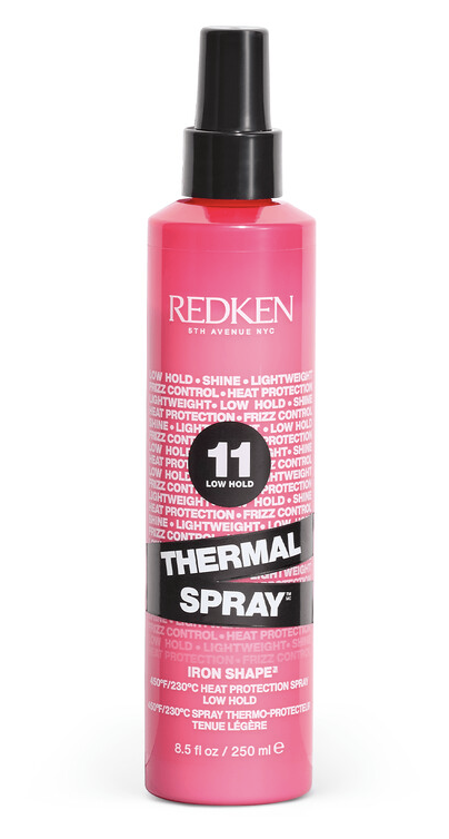 Then, section the hair, apply Thermal Spray 11 Low Hold and curl it with a curling iron. Before each section cools, spritz with Brushable Hairspray. Then, once all hair is curled, brush through with a wide-toothed comb or your fingers for a perfect blowout finish.