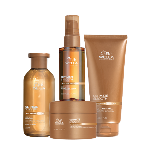 - To protect their smooth, finish with ULTIMATE SMOOTH Miracle Oil Serum through mid-lengths and ends. This delicate oil serum deeply nourishes inside and out, delivers 96 hours of frizz control³, and helps protect from UV and heat (230°C/450°F)—making it ideal before styling and for a final smooth, silky finish.