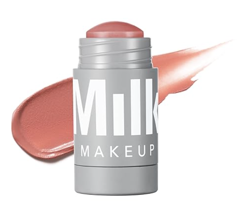 Cream formulas are especially effective because they melt into the skin and mimic a natural flush. Think shades like rose, cranberry, and soft berry tones that echo the lips. The lightweight gel-cream texture of Milk's Lip + Cheek Stick blends seamlessly into the skin, creating a soft watercolor flush that perfectly matches the romantic aesthetic.