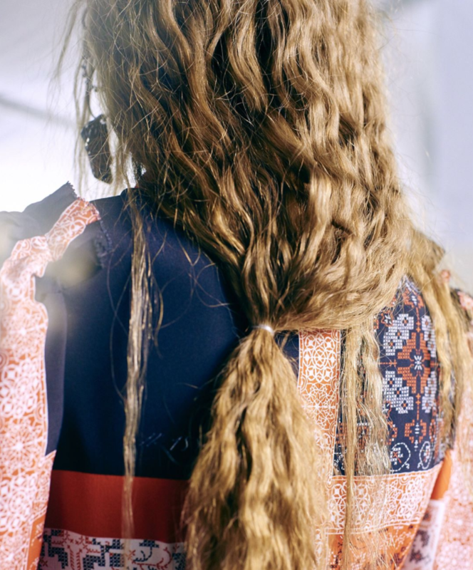 “It’s all about soft, romantic hair. I’ve left the models’ natural length showing so it almost looks like they did it themselves. It feels a bit Pagan and witchy at the same time. I'm using Redken's Braid Aid 03 to make the braids then gently brushing them out for some softness with a low pony.” – Guido Palau, Global Creative Director For Redken