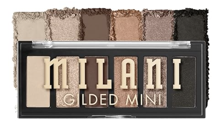 Milani Gilded Mini Eyeshadow Palette — Compact, easy-to-carry, and surprisingly punchy — perfect for a quick NYE touch-up or a minimalist metallic wash.
