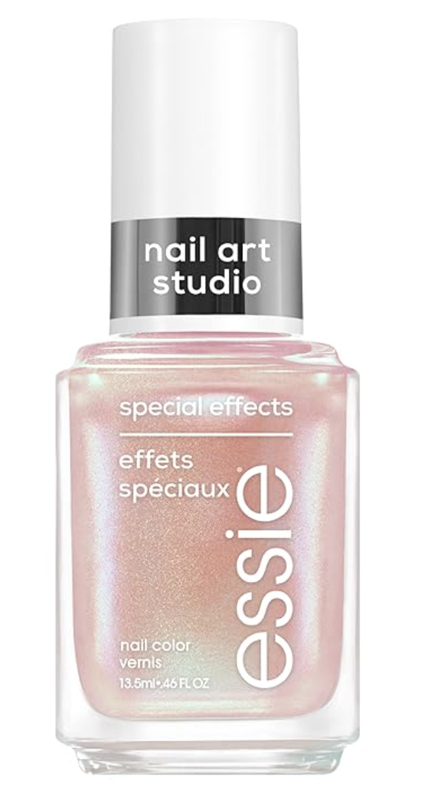 A peach-pearl satin chrome polish. It’s often layered over a solid base, but it’s perfect on its own for a toasted mani.