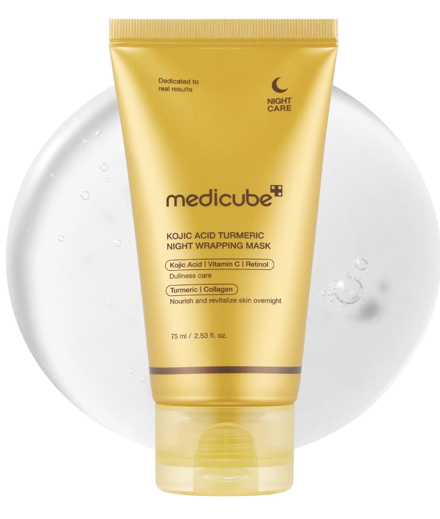 Medicube Kojic Acid Turmeric Overnight Wrapping Mask: An overnight gel-mask treatment promising visible improvement in dark spots, texture and radiance by morning.