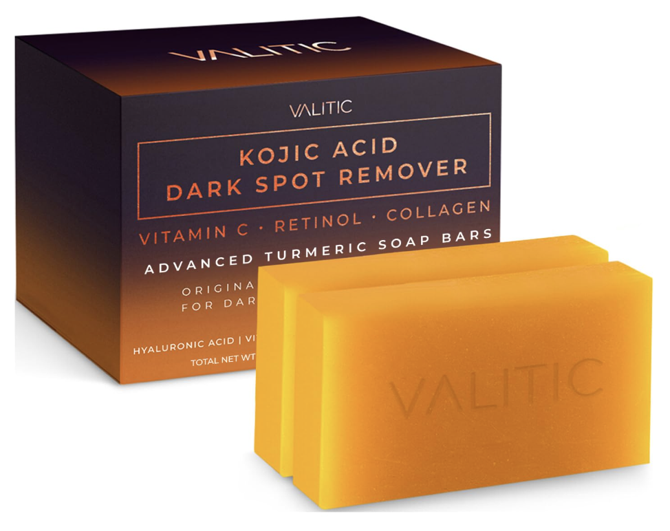VALITIC Kojic Acid Dark Spot Remover Soap Bar: Formulated with skin-cleansing turmeric, this cleanser helps in restoring the moisture balance and reviving your skin from sunburns, fine lines, and wrinkles.