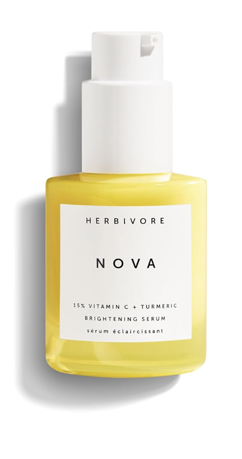HERBIVORE Nova 15% Vitamin C + Turmeric Brightening Serum: Combines turmeric with vitamin C to treat hyperpigmentation and dark spots.